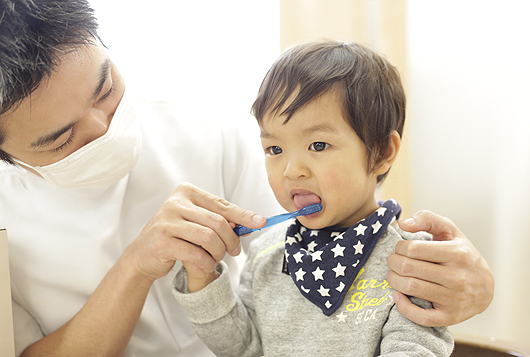 当院では子供の年齢に合わせた歯ブラシ指導、合わせて保護者の方への仕上げ磨きの方法等を指導していきます。