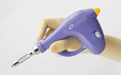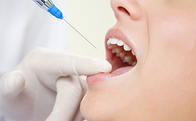 電動麻酔器を使用し、一定の速度と圧で麻酔液を注入します。手動注射に比べてムラが出にくく、注入時の違和感や刺激を抑えた麻酔が可能です。