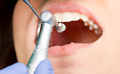 歯科衛生士が専用の機器と研磨剤を使って行う、専門的なクリーニングです。日常の歯みがきでは落としきれない汚れやバイオフィルムを取り除き、口腔内を清潔に保ちます。