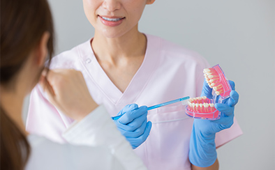 お口の状態や歯並びに合わせて、適切な歯みがき方法をご案内します。正しいケアを身につけることで、ご自宅でのセルフケアの質向上につながります。