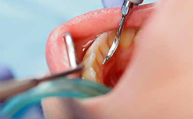 歯ぐきの内側にたまった歯石や細菌を取り除き、歯の根の表面を滑らかに整える処置です。汚れの再付着を抑え、歯周ポケットの改善を目指すため、中等度以上の歯周病治療で重要な工程となります。