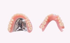 金属のバネを使用しない設計で、自然な見た目に配慮した部分入れ歯です。軽量でお口になじみやすく、装着時の違和感が抑えられます。金属が目立つのを避けたいかたに向いていますが、破損時には修理が難しく、作り直しが必要となる場合があります。